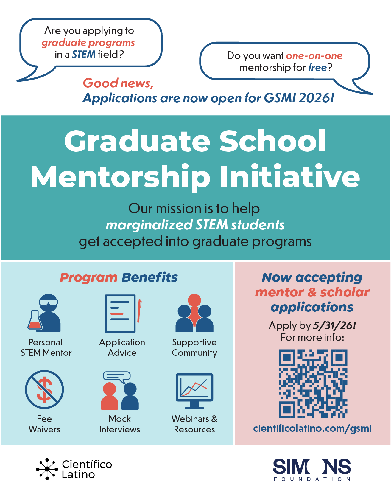 Please note that for 2026 we will only be accepting 100 graduate school applicants to participate in our program. If you have questions about this, please contact gsmi@cientificolatino.com. Thank you for your understanding!